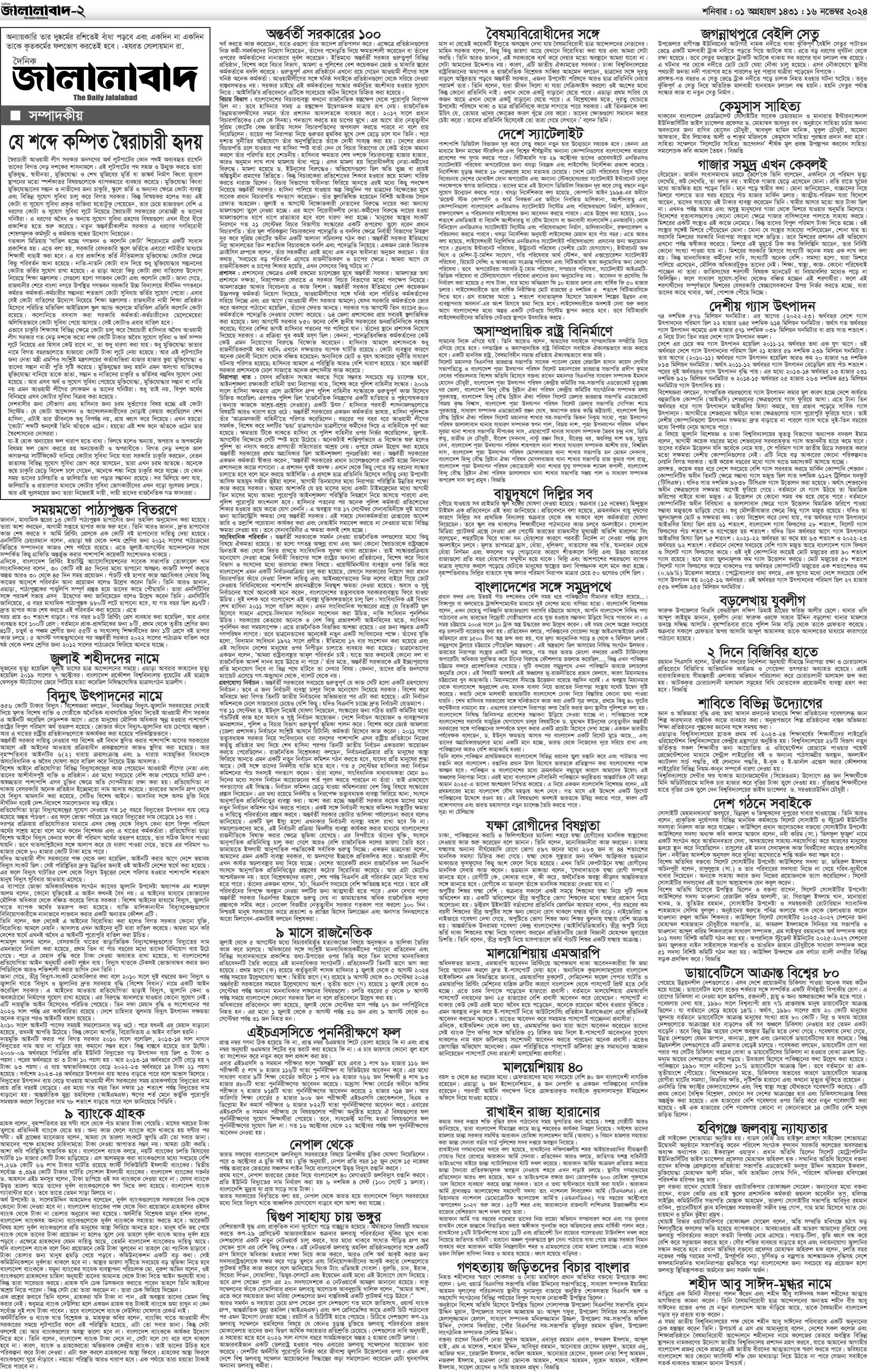 শনিবার, ১৬ নভেম্বার ২০২৪